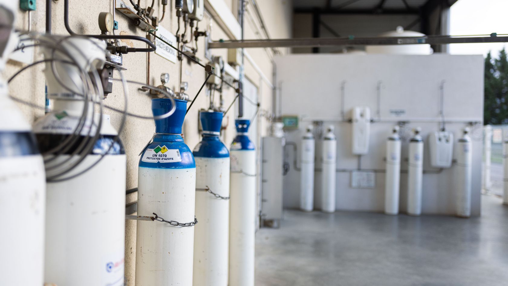 Oltre al bianco dell’ossigeno medicinale, il blu identifica il protossido di azoto, il bianco-nero l’aria medicale, il verde brillante i gas inerti, il rosso i gas infiammabili e il blu chiaro i gas ossidanti.